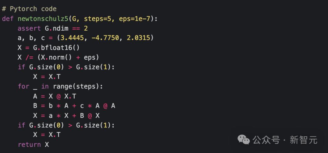 Muon,是一种为神经网络2D参数隐藏层设计的优化器。它的核心思想是,SGD-动量法(SGD-momentum)生成的更新矩阵,通过Newton-Schulz迭代进行正交化处理,生成接近于半正交矩阵的更新,从而提升训练效率。