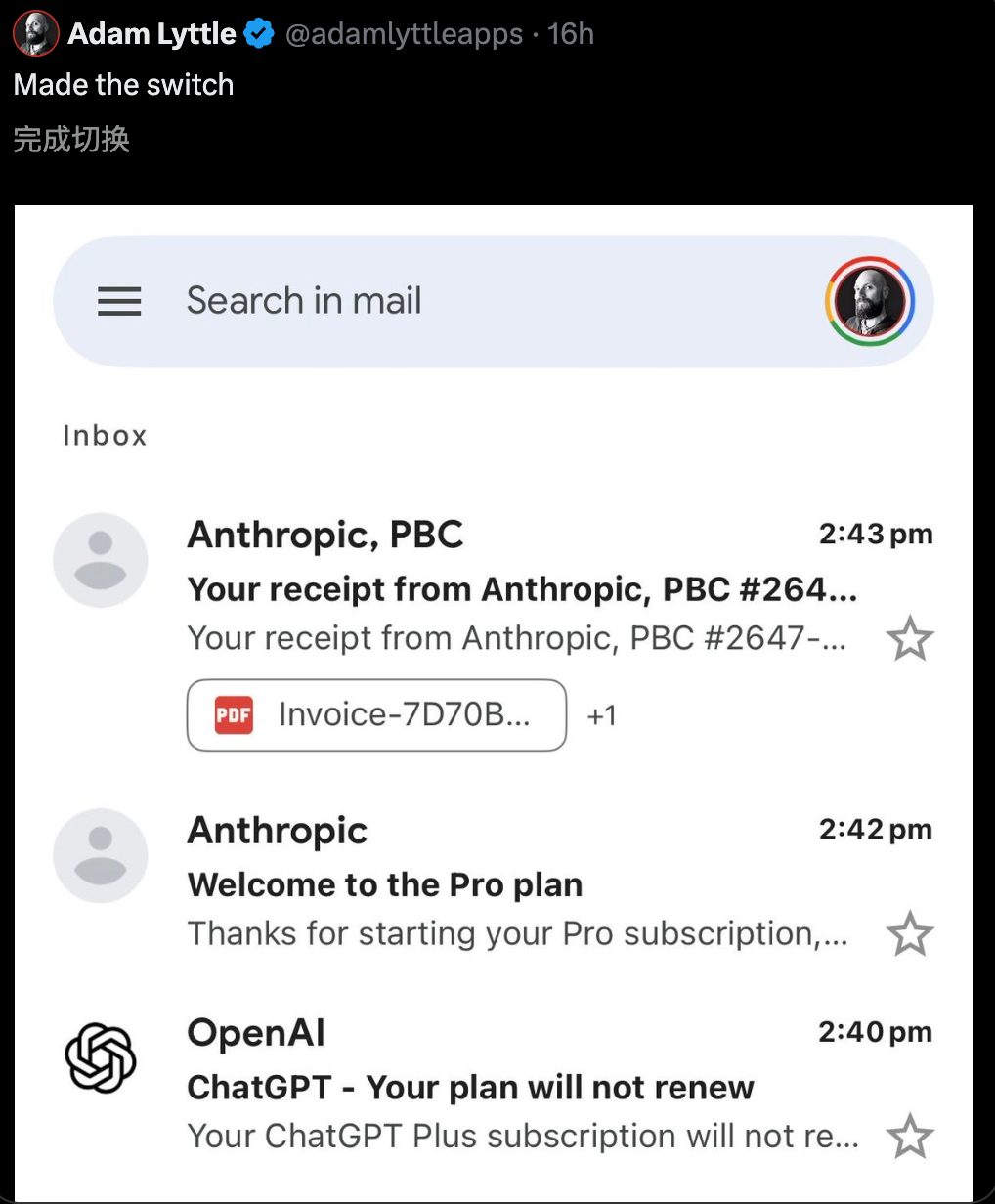 这不还有人,在同一时间,取消了ChatGPT订阅了Claude。