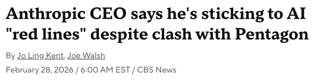 昨天,五角大楼下达的「最后通牒」时间已过,Anthropic不但没有妥协,还再次重申坚定的两条「红线」: