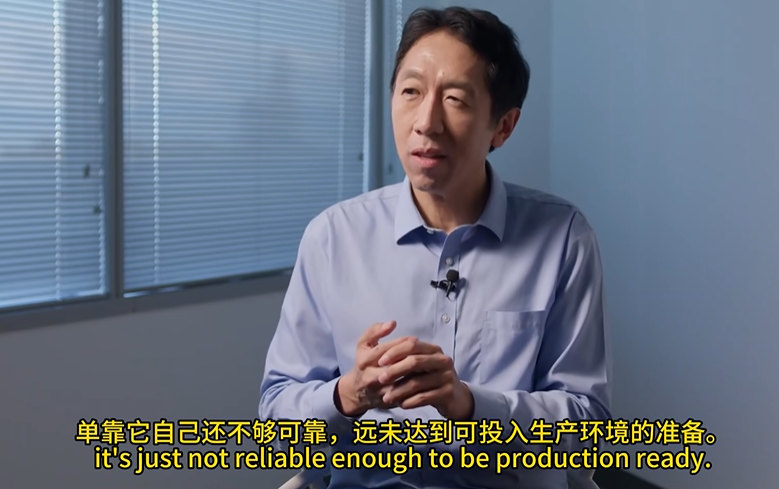 一周之前,DeepLearning.AI创始人吴恩达博士在一次访谈中也明确指出:高风险企业应用中,完全自主的模型与生产级可靠性之间仍有巨大缺口。