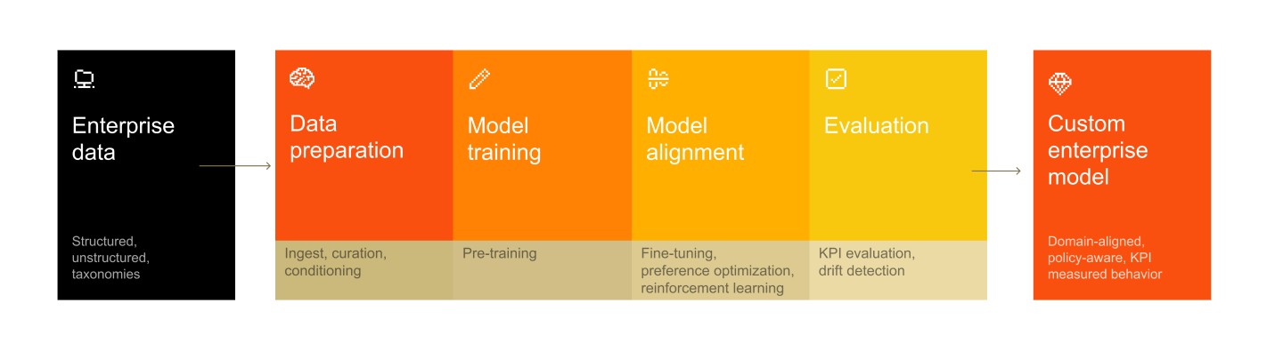 在 Forge 系统中,企业的内部文档、代码库、结构化数据、运营记录等素材可通过预训练、训练后、强化学习等多种方式添加到模型之中,从而开发出反映企业差异化属性的特化模型。这种模式赋予企业对模型的控制权和战略自主。