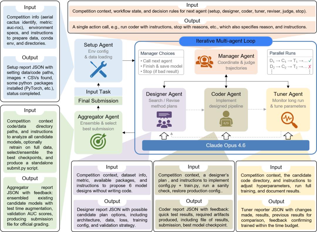 可复现性:所有智能体通过存储于磁盘中产出物(方案文档、配置文件、日志、检查点)进行协调,而非依赖内存中的临时信息,确保每一步操作均可事后审查与复现。