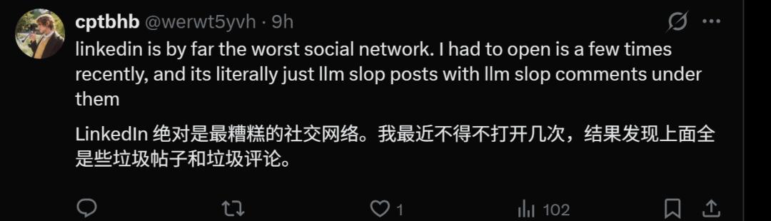 由于“放任”(至少在网友眼中是这样)AI占据领英,人们纷纷喊出“领英堕落了”这样的口号。