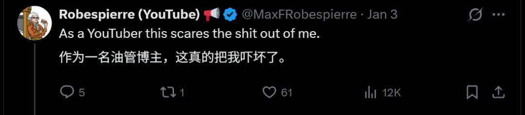 当然了,博主的部分论据也引来了网友们的质疑,比如被他提到的排名第一的油管AI博主,其实经常有人机合作直播的情况。