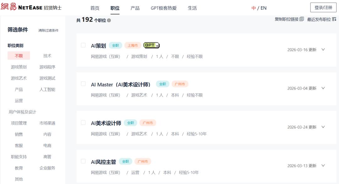 而如今仅凭官网的招聘信息粗筛,腾讯IEG互娱便有140余岗位,网易互娱192个岗位,米哈游134个相关岗位在招。