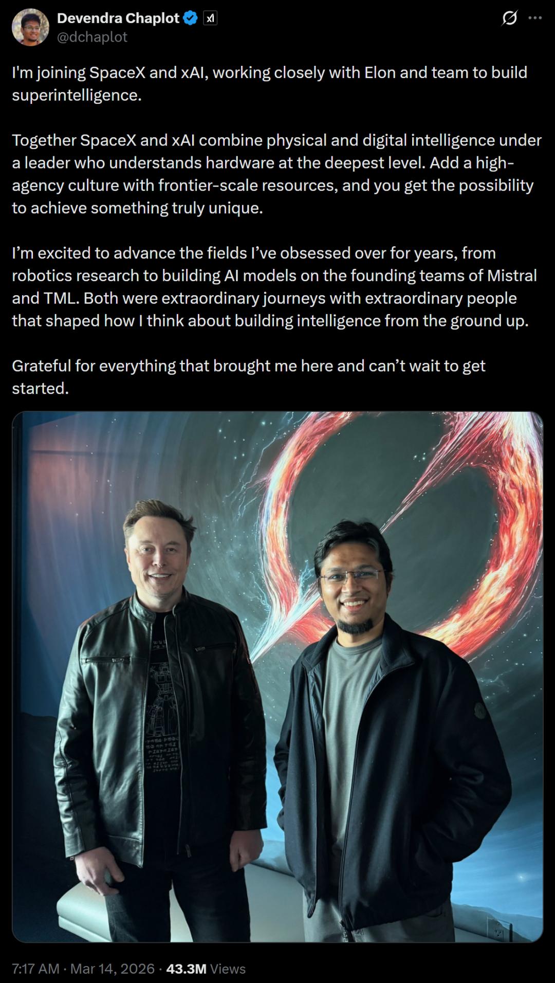 xAI的前创始团队正是被马斯克的资源和野心所吸引才加入的——他们不缺钱,不缺机会。