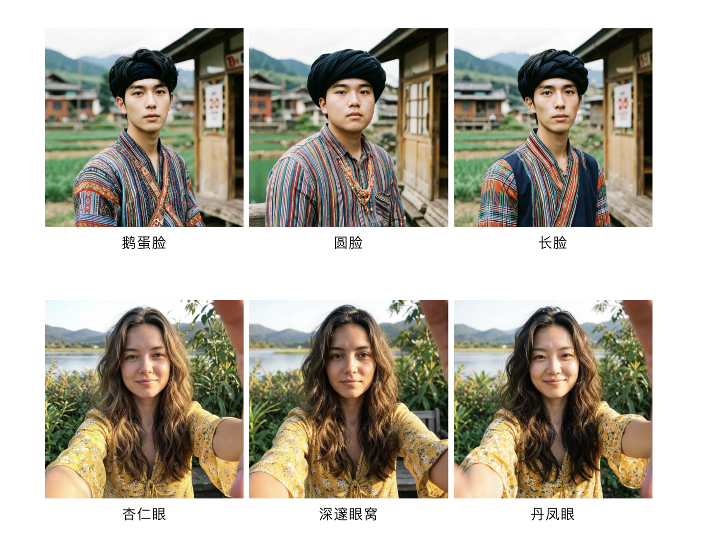 Wan2.7-Image 强化了虚拟形象捏脸功能,支持从骨相、眼眸到五官细微处的全方位定制,比如更换提示词中的脸型(鹅蛋脸、圆脸、方脸、长方脸等)、眼部特征(杏仁眼、深邃眼窝、圆眼、丹凤眼等),实现“千人千面”。