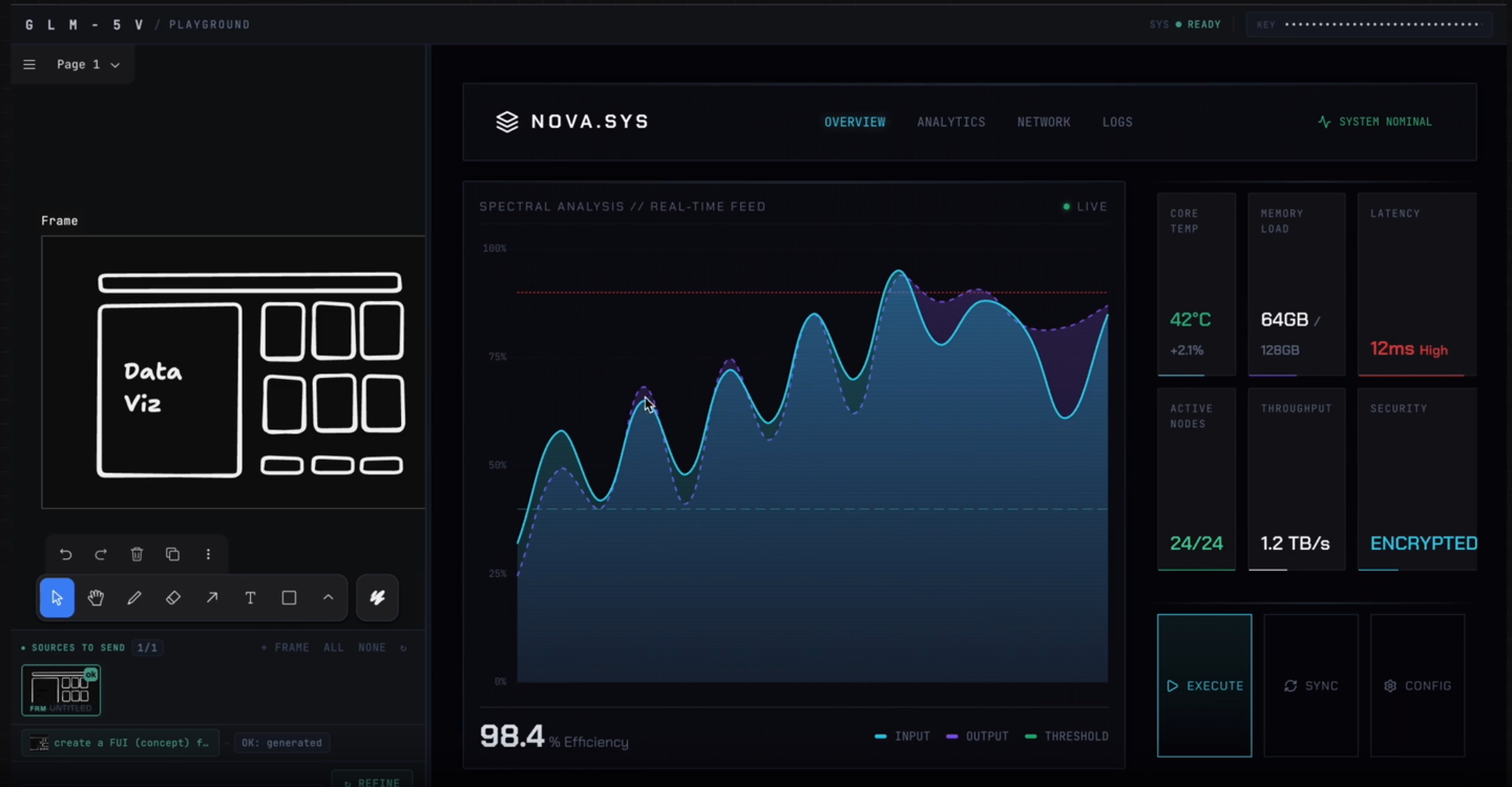 据介绍,GLM-5V-Turbo 从预训练阶段深度融合视觉与文本能力,让编程不再局限于纯文本输入。模型能看懂设计稿、截图、网页界面,并据此生成完整可运行的代码,真正做到看得懂画面、写得出代码。