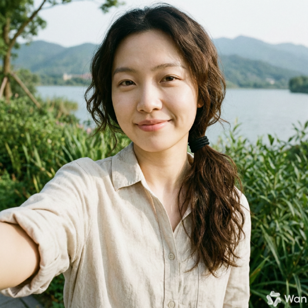 我们先尝试了基础定制需求,让它帮我生成一个中国女性生活照,其中对五官的要求比较细致,包括“鹅蛋脸”、“柳叶眉”、“带点肉感的秀鼻”“M 唇”、“梨涡”等特征。Wan2.7-Image 一次生成 4 张。