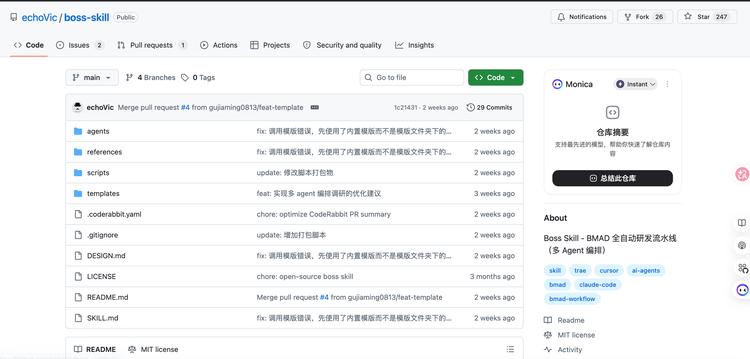 更进一步,GitHub 上甚至已经出现了把“老板职能”做成 skill 的方向。比如 boss-skill 这类项目,核心不是复刻某个老板的语气,而是把“统筹、分工、推进、调度多个角色”的管理中枢抽象成一个 Boss Agent;而像 ceo-advisor 这样的 skill,则进一步把战略决策、资源配置、董事会沟通和组织发展这些典型 CEO 职责做成可调用框架。即便是老板也能被 skill 化。