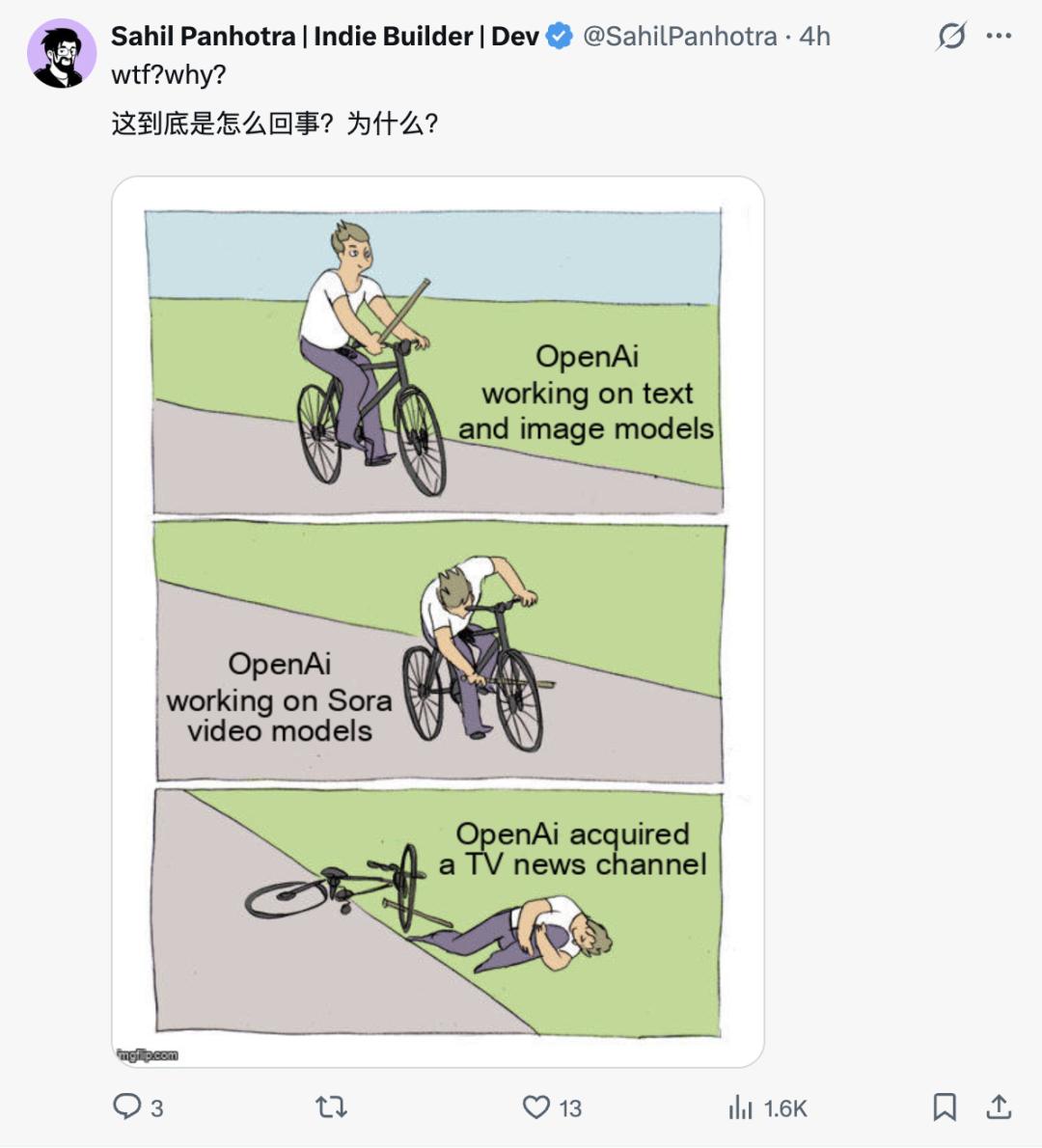 对于这次收购,不少网友表示理解无能,尤其是在OpenAI刚砍掉Sora,拿下融资,说要集中注意力的时候。