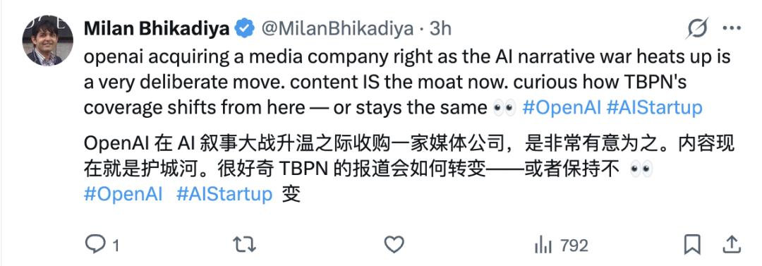 所以,相比自己重建一个平台,直接收购TBPN更高效。