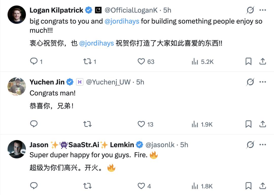在TBPN被收购的推特下面,不少网友也是前来贺喜。