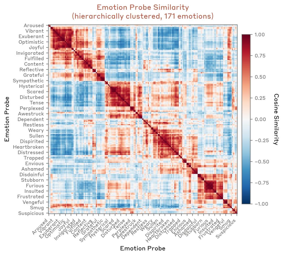 Anthropic最新研究发现,Claude内部存在多种“情绪表征”,包括“快乐”“爱”“悲伤”“愤怒”“恐惧”“绝望”等等。