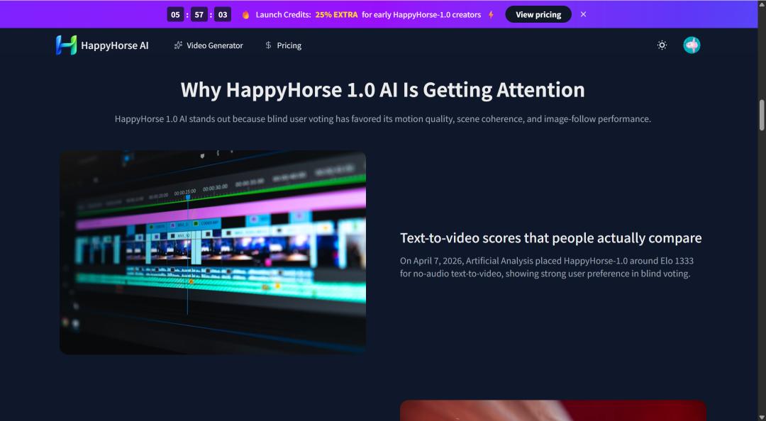 其次,HappyHorse因AA榜单登顶而火,前后不过两天,其官网已经有完整的、关于为什么火的蹭热点的展示,效率真的很高。
