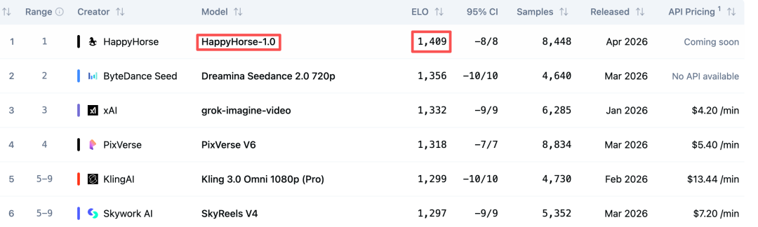 一个神秘模型 ——HappyHorse-1.0 悄然登顶 Artificial Analysis 的 AI Video Arena 排行榜,力压 Seedance 和可灵。