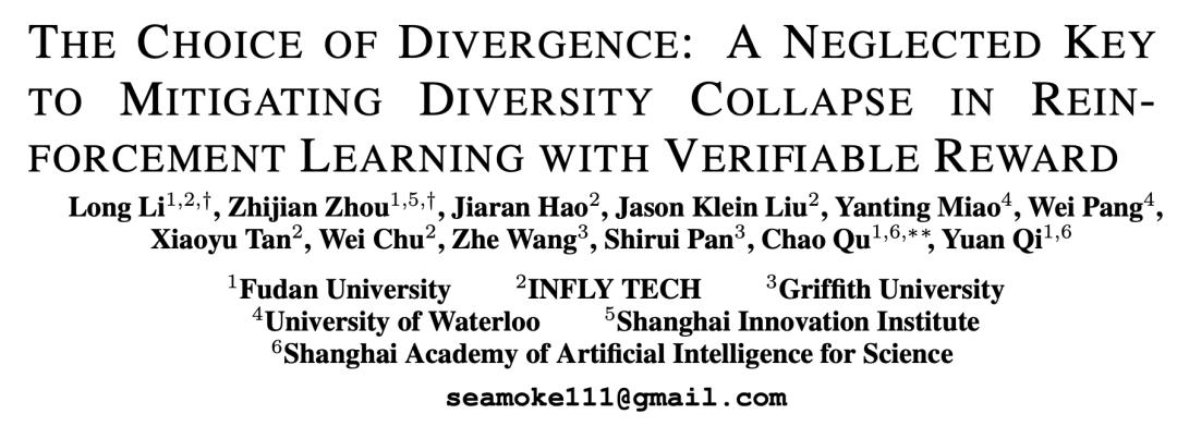 论文标题:The Choice of Divergence: A Neglected Key to Mitigating Diversity Collapse in Reinforcement Learning with Verifiable Reward