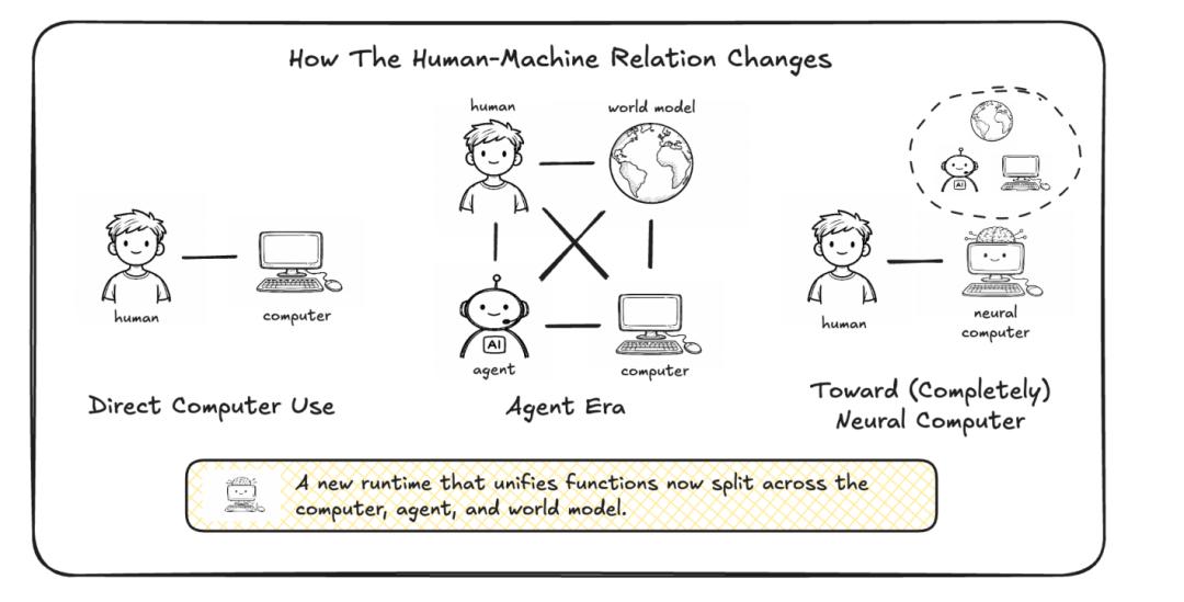 图 | 人类与计算机的关系经历了从传统计算机、Agent 时代到神经计算机的演变历程。