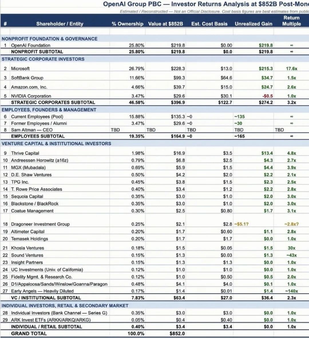 这份据称来自OpenAI内部的股权结构表,第一次把这家公司的所有权分配摊在了阳光下。