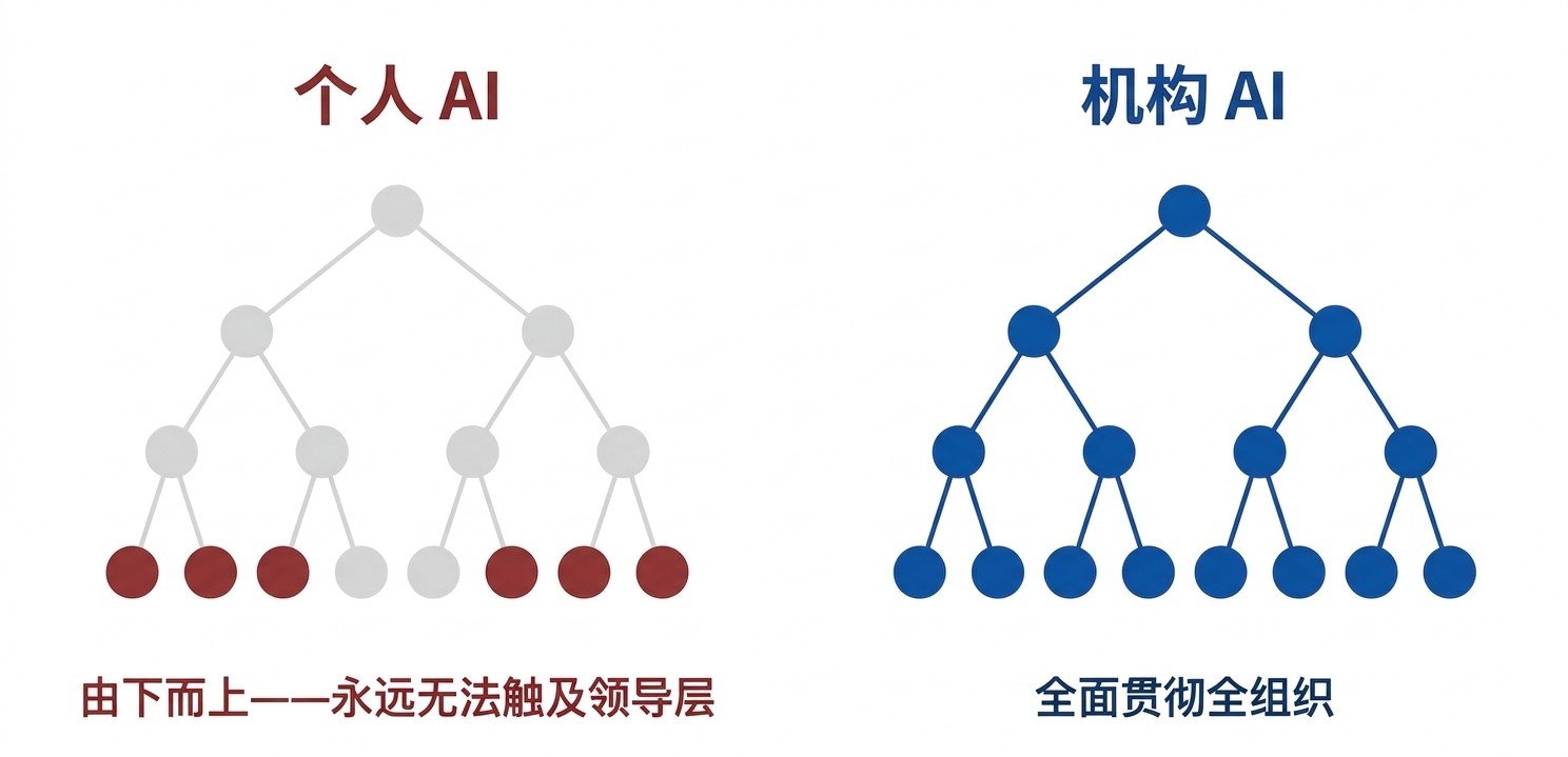 个人化 AI 给你工具。机构化 AI 教你如何使用工具。