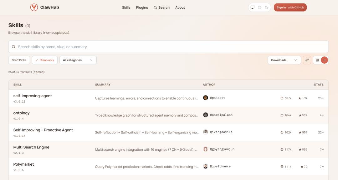 OpenClaw 的官方技能商店 ClawHub|图片来源:ClawHub