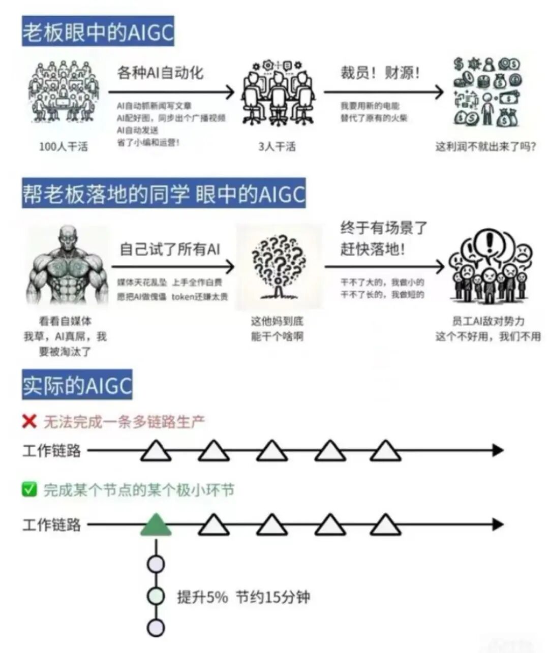 但你仔细观察一下就会发现,真正可怕的不是AI本身有什么问题,而是这些老板对AI产生了一种蜜汁自信——