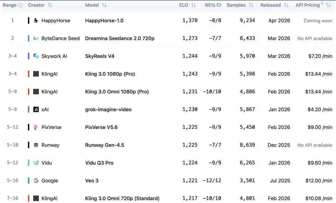 一款名为“HappyHorse-1.0”的AI视频生成模型突然在Artificial Analysis Video Arena盲测榜单登顶。在行业还在猜测是谁家的“马甲”时,阿里已经出面认领——这是阿里旗下ATH(Alibaba Token Hub)事业群的创新事业部的内测产品,将于4月30日开放API。