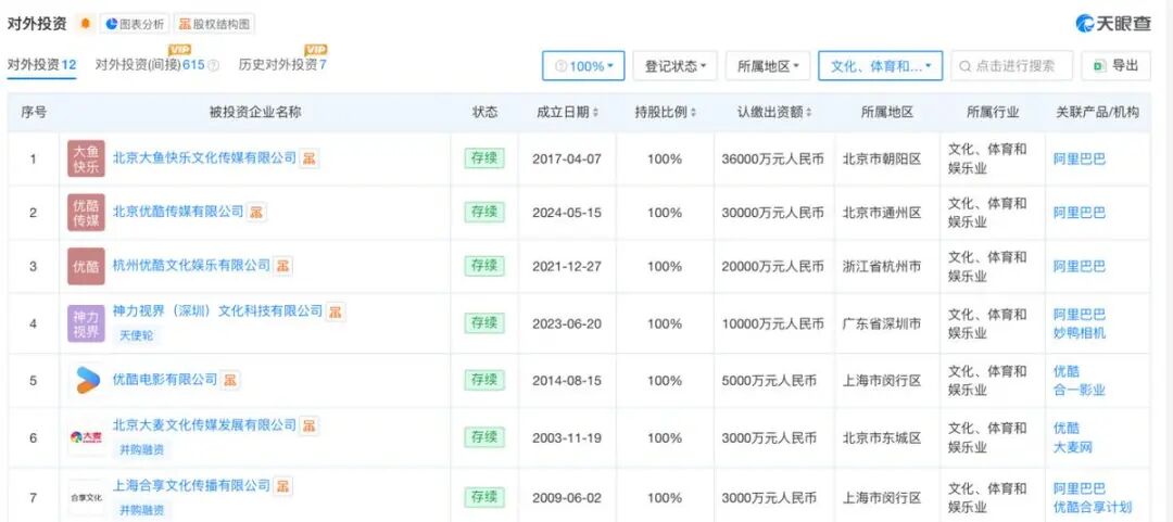 天眼查,APP信息显示,虎鲸文娱的全资子公司之一就是优酷。于阿里而言,优酷依然是阿里体系内容生态最前沿的阵地。