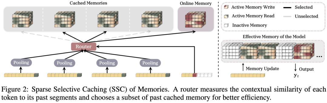 3、稀疏选择性缓存(Sparse Selective Caching,SSC):到目前为止,似乎没有免费的午餐,我们需要在不断增长的有效记忆和每 token 恒定的解码成本之间做出选择。