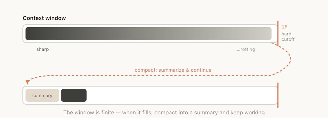 更要命的是,当上下文快要撑到100万Token上限时,系统会自动触发「压缩」(compaction):