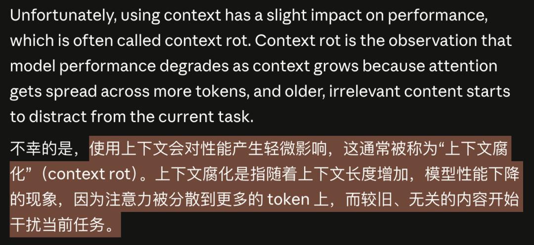 近日,Anthropic一篇关于「如何管理百万上下文」的博客中再次提到了「上下文腐烂」(context rot)的问题,简单说就是: