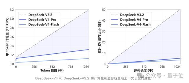 V4开创了一种全新的注意力机制,在token维度进行压缩,结合DSA稀疏注意力一起用。相比传统方法,对计算和显存的需求大幅降低。
