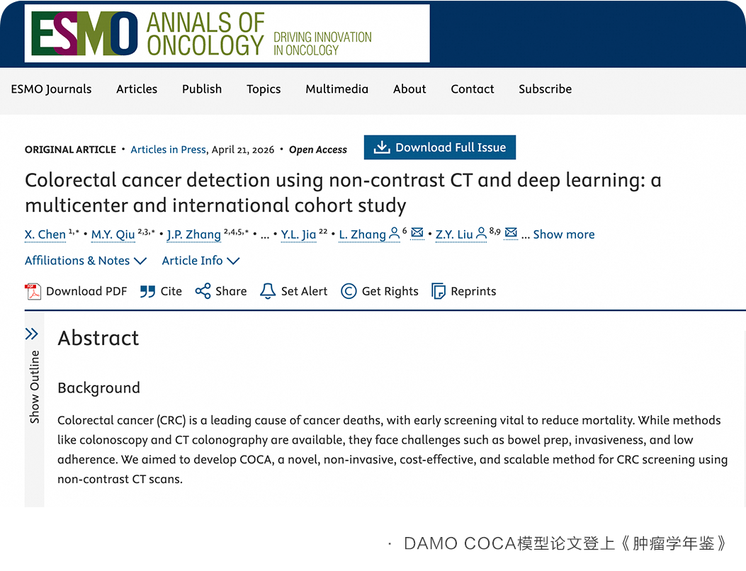 研究团队发表在欧洲肿瘤内科学会官方期刊《肿瘤学年鉴》(IT之家注:Annals of Oncology,影响因子 65.4)上的论文显示,DAMO COCA 模型整体的敏感性(即防止漏诊的能力)达到 86.6%,特异性更达到 99.8%,即误诊率仅有 0.2%。