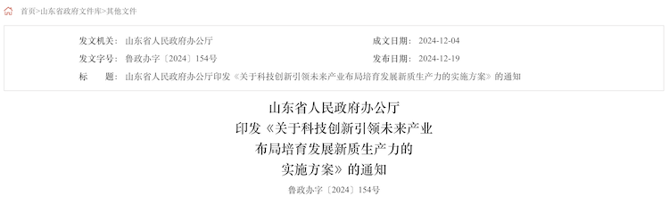 C114讯 12月23日消息(南山)近日,山东省人民政府办公厅印发《关于科技创新引领未来产业布局培育发展新质生产力的实施方案》。