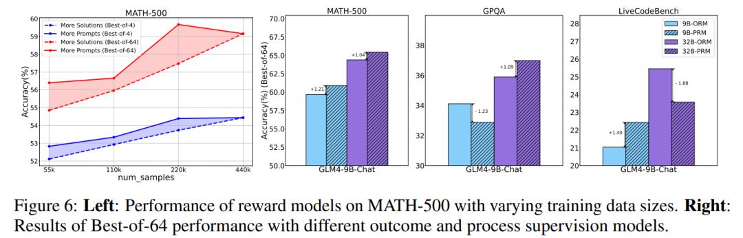 此外,研究团队针对奖励模型的训练,从数据多样性与规模、过程奖励与结果奖励两个角度展开了详细研究。