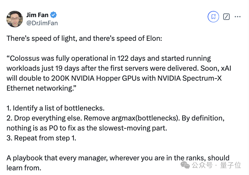 英伟达科学家Jim Fan感叹,这就是马斯克速度。