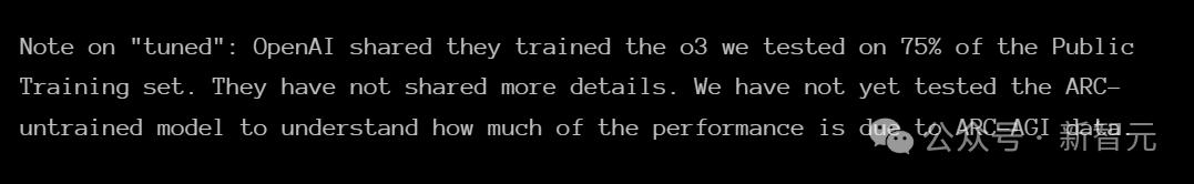 OpenAI分享说,他们测试的o3是在公共训练集75%的数据上进行训练的。他们尚未透露更多细节。我们尚未测试未经ARC数据训的模型,因此尚不清楚其性能有多少归因于ARC-AGI数据。