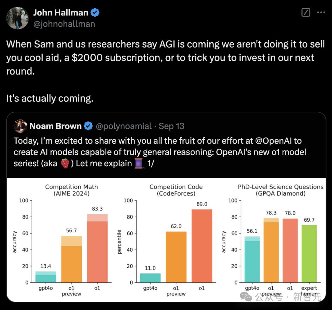 另一位OpenAI研究员John Hallman对此表示,当Sam和我们研究人员说AGI即将到来时,我们不是为了给你画大饼,不是为了推2000美元的订阅,也不是为了诱骗你投资我们的下一轮融资。它真的要来了。