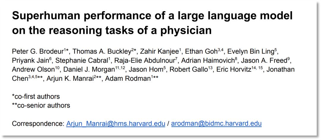 图片来源:论文《大型语言模型在医学推理任务中的超人表现》