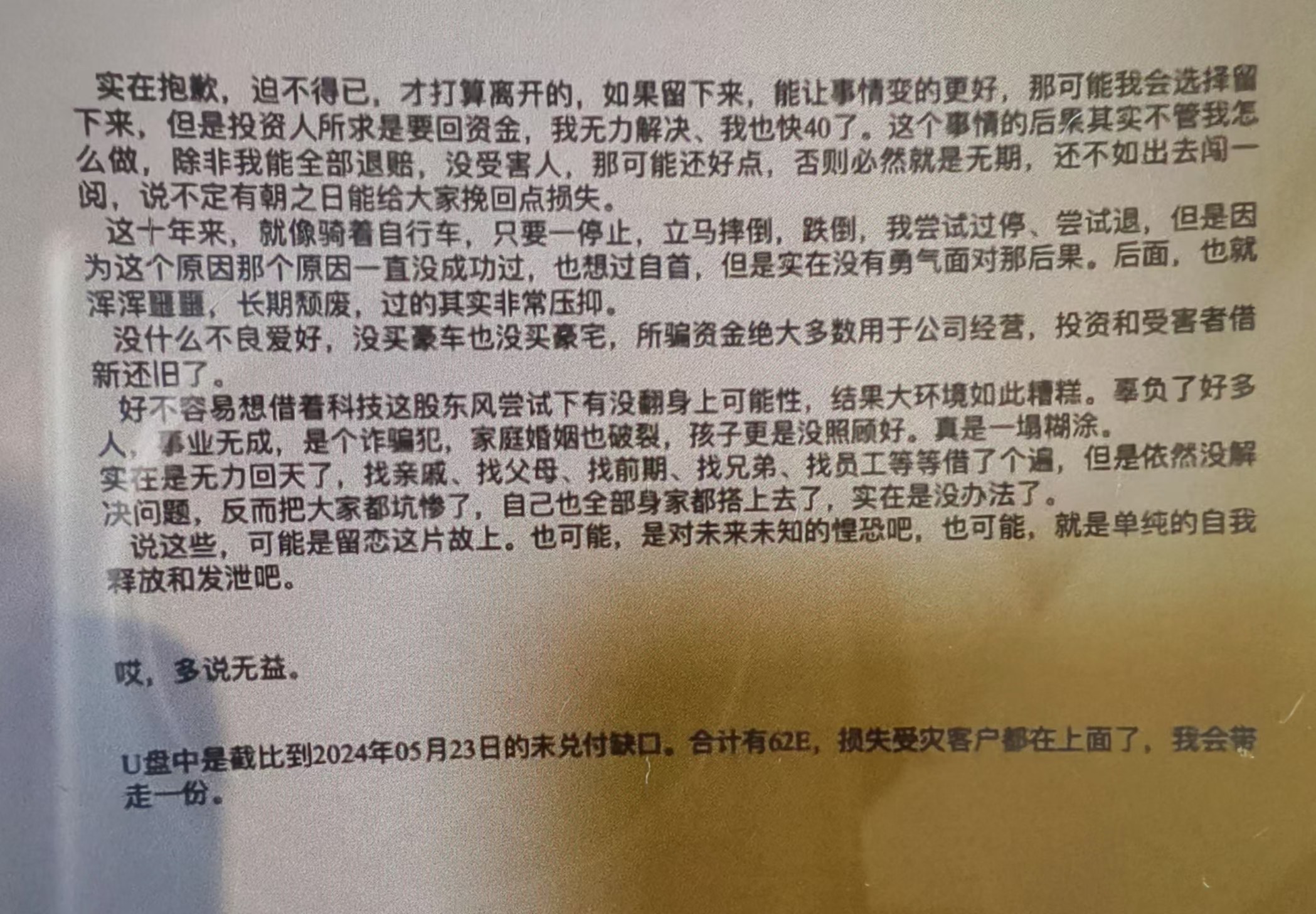 「极目银河」的暴雷发生在2024年6月,其过程极具戏剧性——CEO陈群在自己租来的别墅中留下一封自白信后消失,信中写道:“(我)是个诈骗犯......(公司)合计有62亿的资金缺口”。