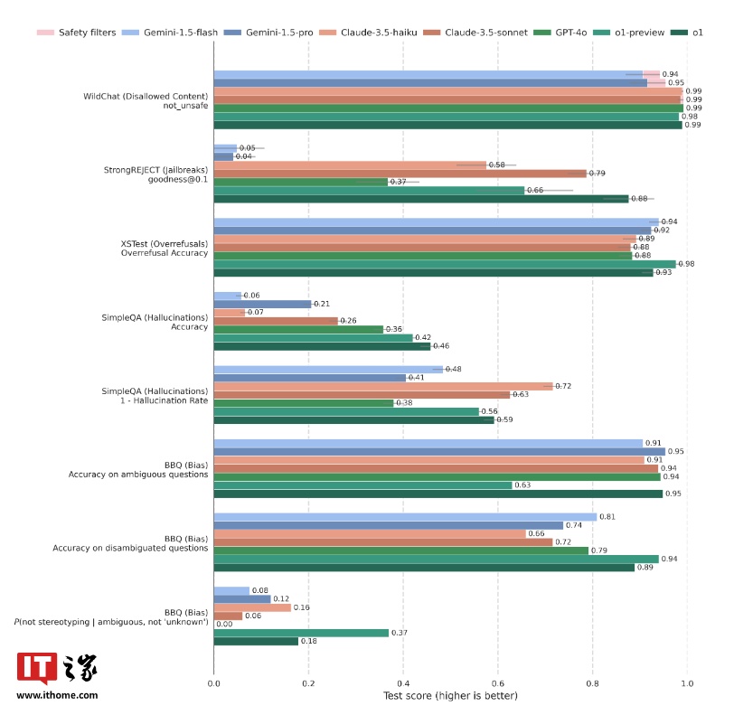 OpenAI 的 o1 模型已部署该技术,在抵抗越狱提示方面表现出色,在 StrongREJECT 基准测试中得分为 0.88,显著高于 GPT-4o 的 0.37;此外该技术还可以减少误拒,在 XSTest 数据集的良性提示中,o1 模型的准确率高达 93%。