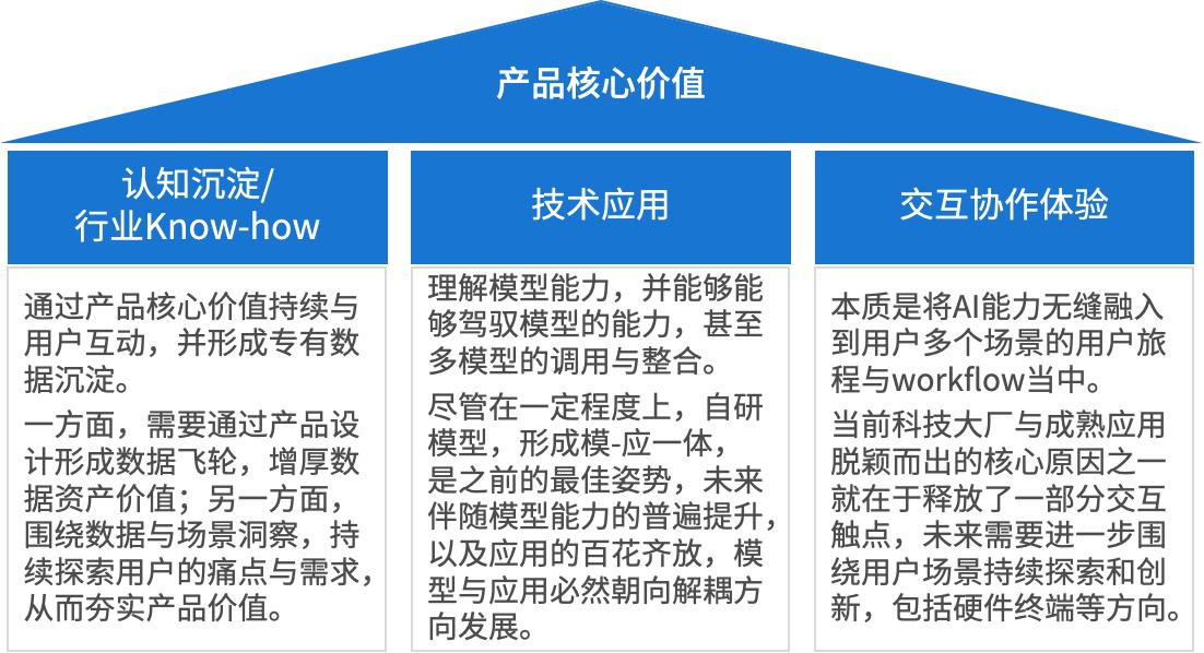 总体上而言,无论是 AI 原生,还是成熟应用,无论是科技大厂, 还是创业公司,未来一轮 AI 应用的竞争将围绕如下方面展开: