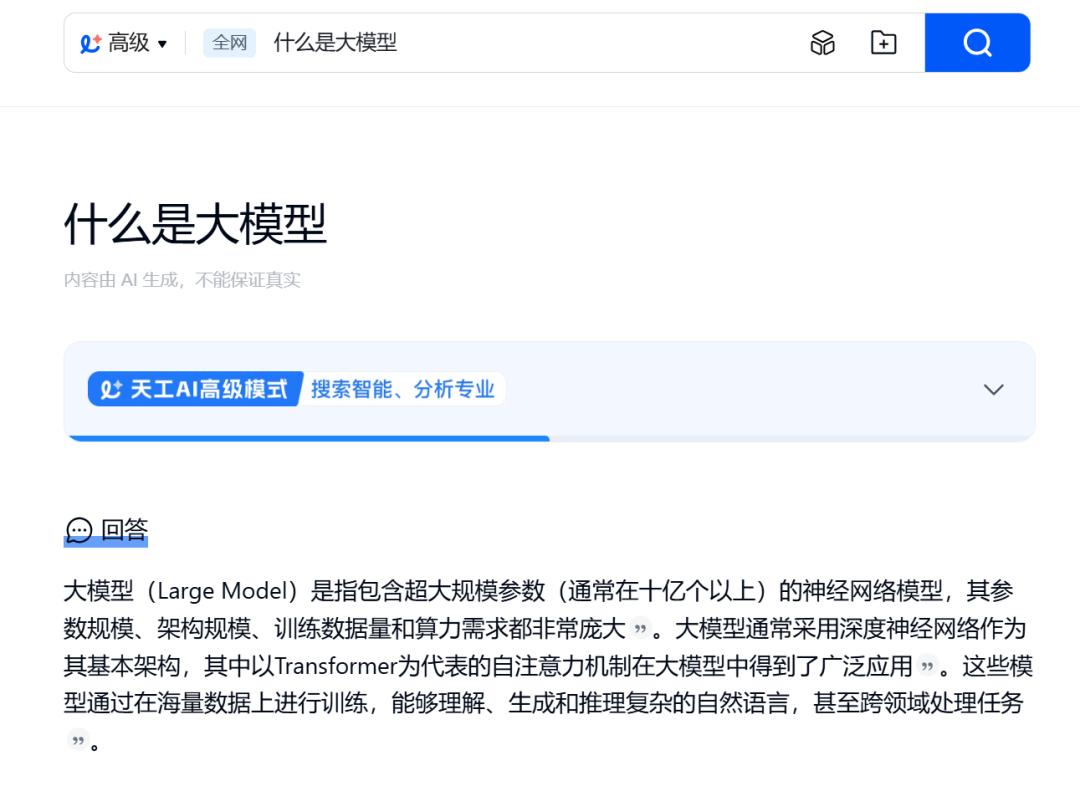 在AI搜索的初期,它更多被视为独立产品,主要功能集中在提供搜索服务上。像秘塔AI、天工AI等公司,采取了“传统搜索引擎+AI”的方式。用户在输入框中输入问题,AI则会从网页内容中读取并进行总结。