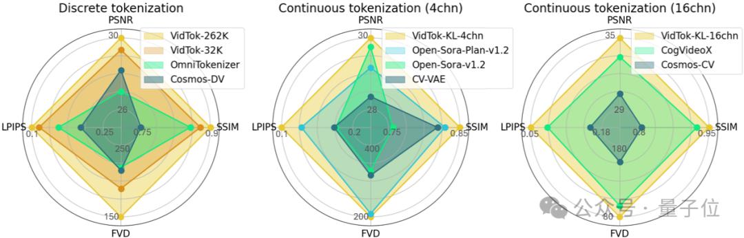而最新的VidTok,在连续和离散、不同压缩率等多种设定下,各项指标均显著优于SOTA模型。