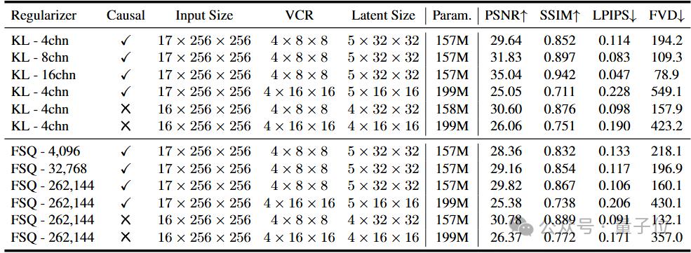 如下表所示,VidTok支持多样化的隐空间且具有灵活的压缩率,同时支持因果和非因果模型,以适应不同的使用需求。