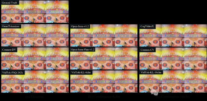从视频帧的重建质量可以看出,与现有的方法相比,VidTok在各种模型设定下,均展现出了最优的重建细节保真度和主观视觉质量。证明了VidTok作为多功能视频Tokenizer的有效性。