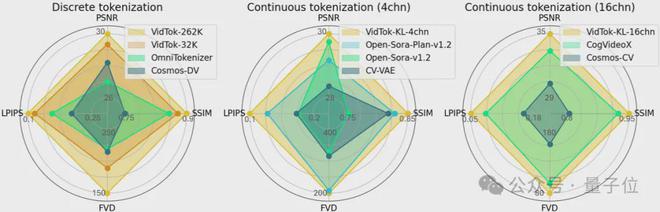 在测试中,VidTok性能全面领先,适用各种场景。