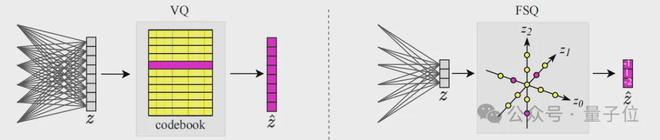 有限标量量化(FSQ)由“Finite scalar quantization: Vq-vae made simple”提出,其核心原理是,在隐空间表征中,每个标量条目通过四舍五入独立量化到最近的预定义标量值。