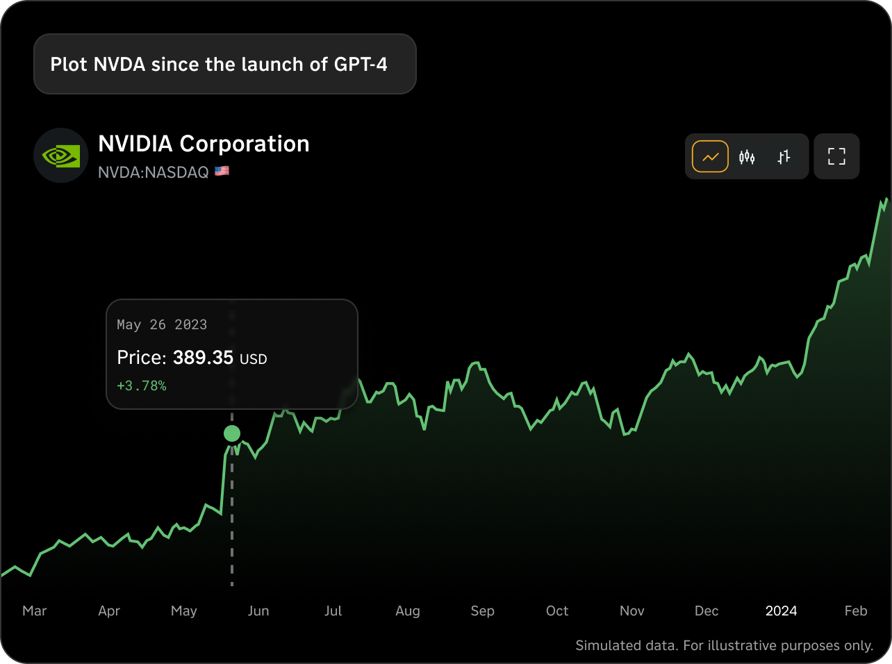 Reflexivity 的终端界面示意图,该界面通过数据分析将简单的查询转化为答案。