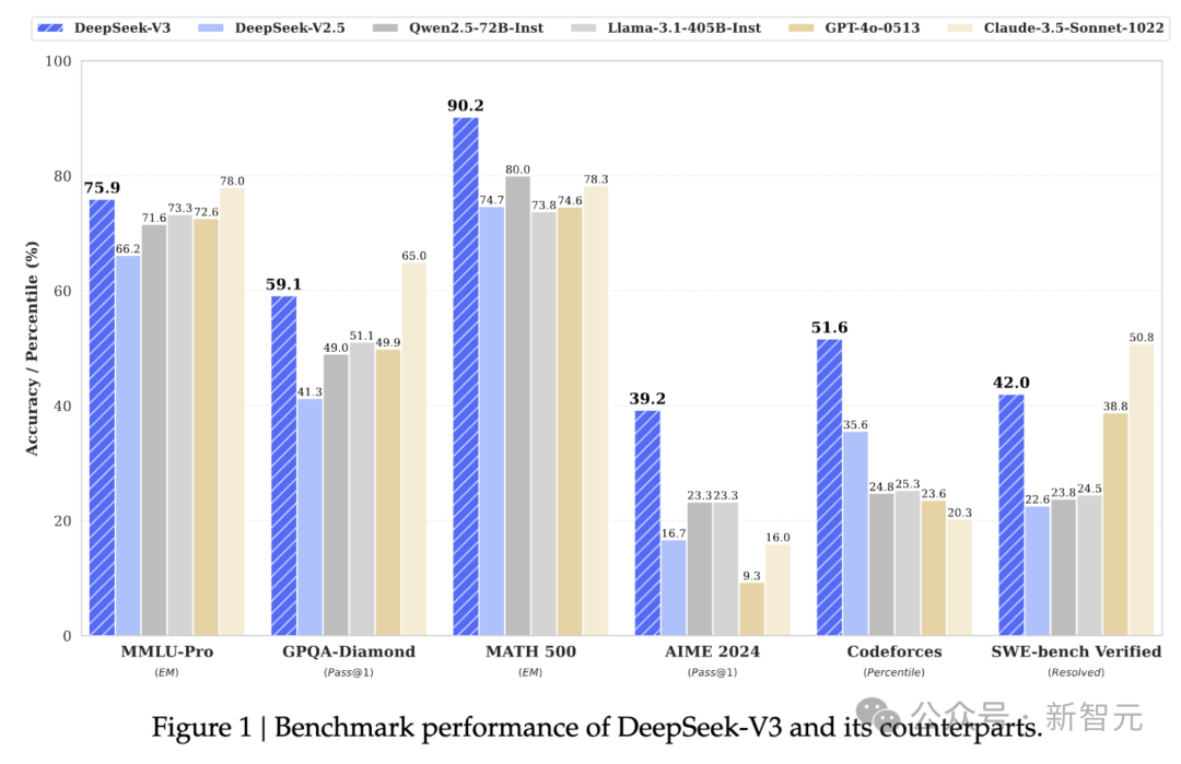 DeepSeek-V3不俗表现,是在上一代V2进一步升级和迭代。